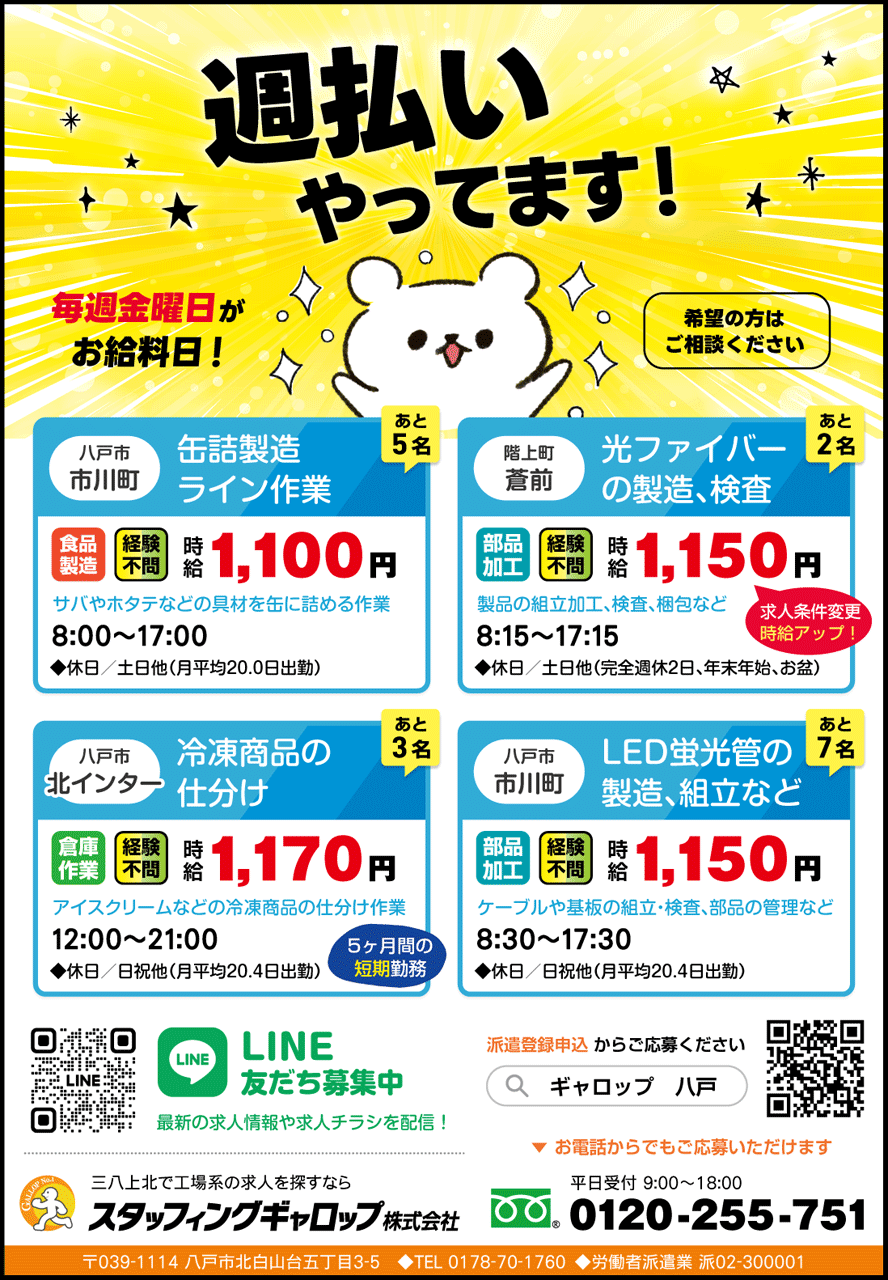 青森県八戸市桔梗野工業団地時給